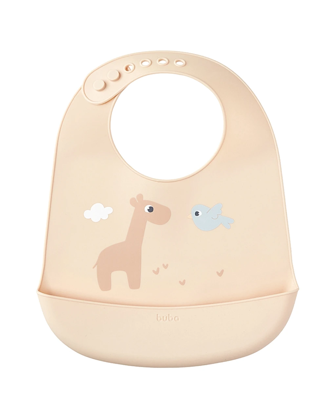 O Babador de Silicone Cloudy da Buba e super prático e higiênico. Possui bolso pega migalhas, ideal para proteger a roupinha do bebê. O fecho com botões se ajusta facilmente ao pescoço do pequeno.