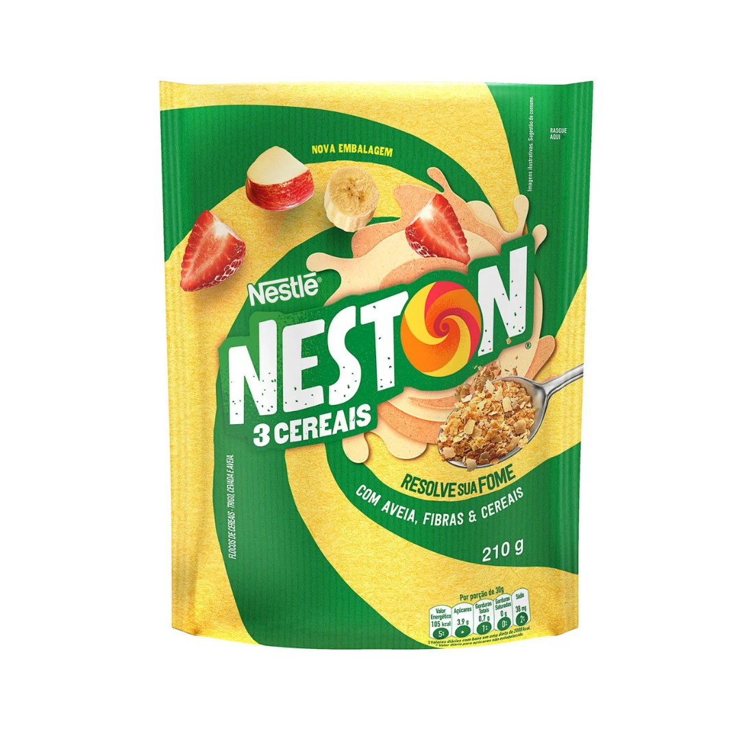 Cereal Nestlé Neston 3 Cerais com Aveia, Fibras e Cerais é feito com cereal integral, e contém fibras e ferro. Uma combinação perfeita de trigo, aveia e cevada para o preparo de vitaminas, tornando a vitamina ainda mais gostosa, além de ser uma opção completa quando misturado com leites e frutas.