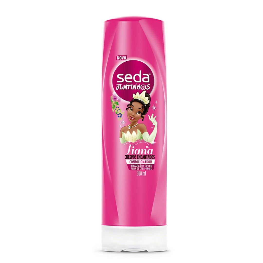 O Condicionador Seda Juntinhos Tiana Crespos Encantados traz para a hora do banho as aventuras das personagens mais amadas pelas crianças.