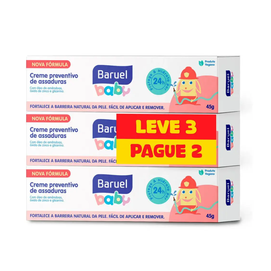 Hipoalergênico, o creme preventivo é livre de parabenos e corantes, garantindo maior segurança contra alergias.