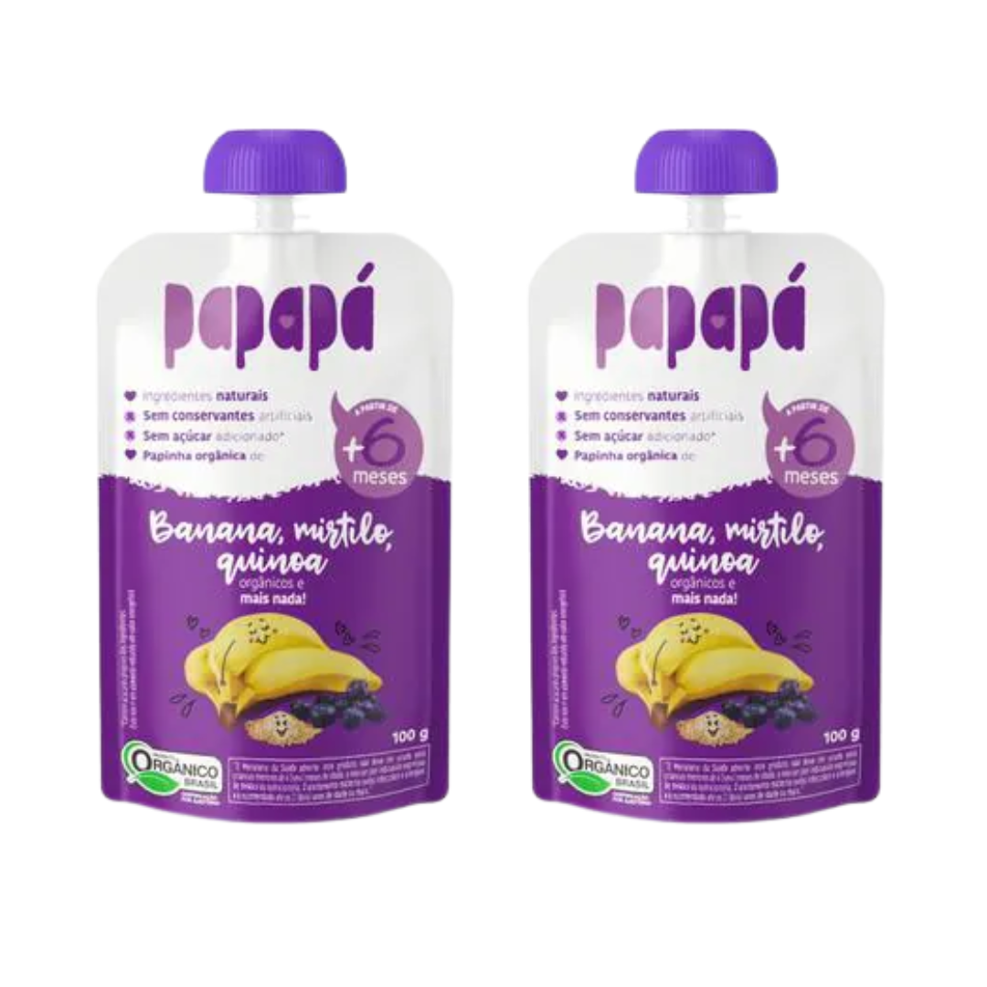 2 unidades da Papinha Orgânica Banana, Mirtilo e Quinoa com 100g