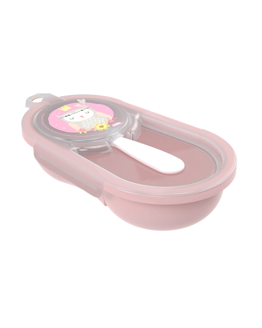 Pote de papinha que acompanha colher e tampa. Pode ser levado ao freezer e ao microondas. Possui tampa higienica que a colher fique higienizada e protegida.