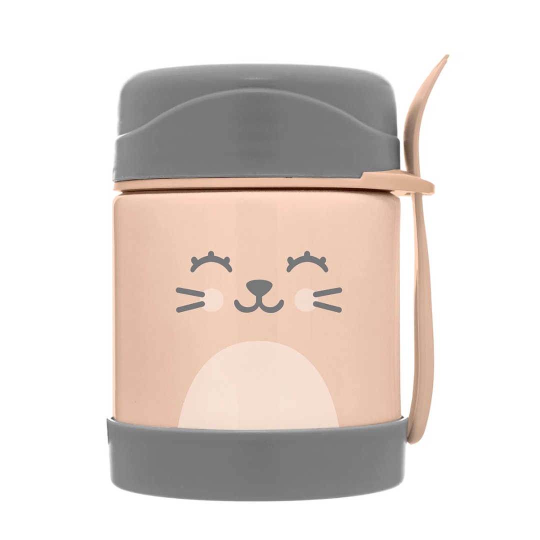 O Pote térmico da Buba é ideal para refeições dora de casa. Ele conserva a temperatura do alimento por até 5 horas e acompanha colher.